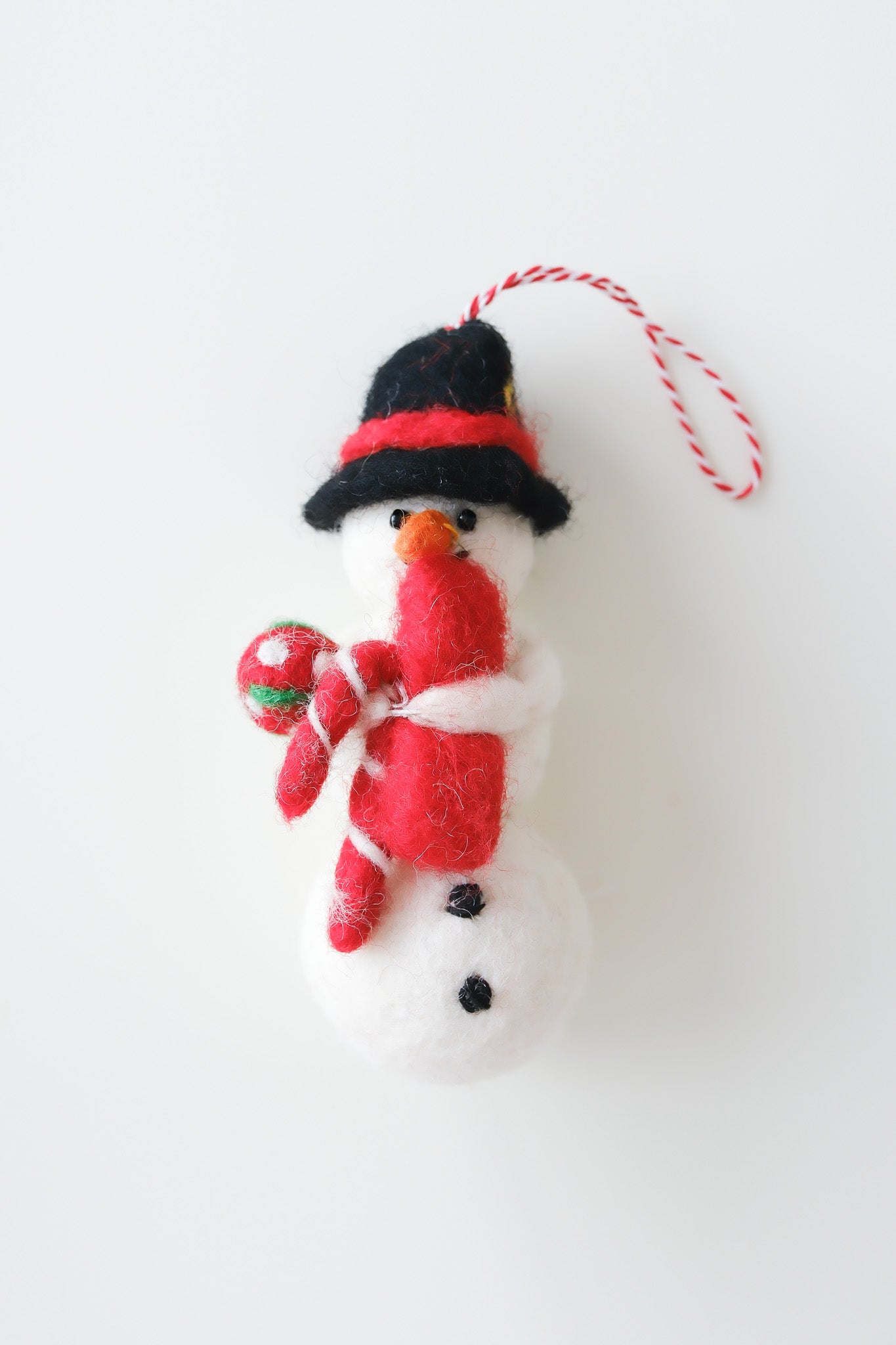 🎄 Snowman with Black Hat Wool Felt Ornament